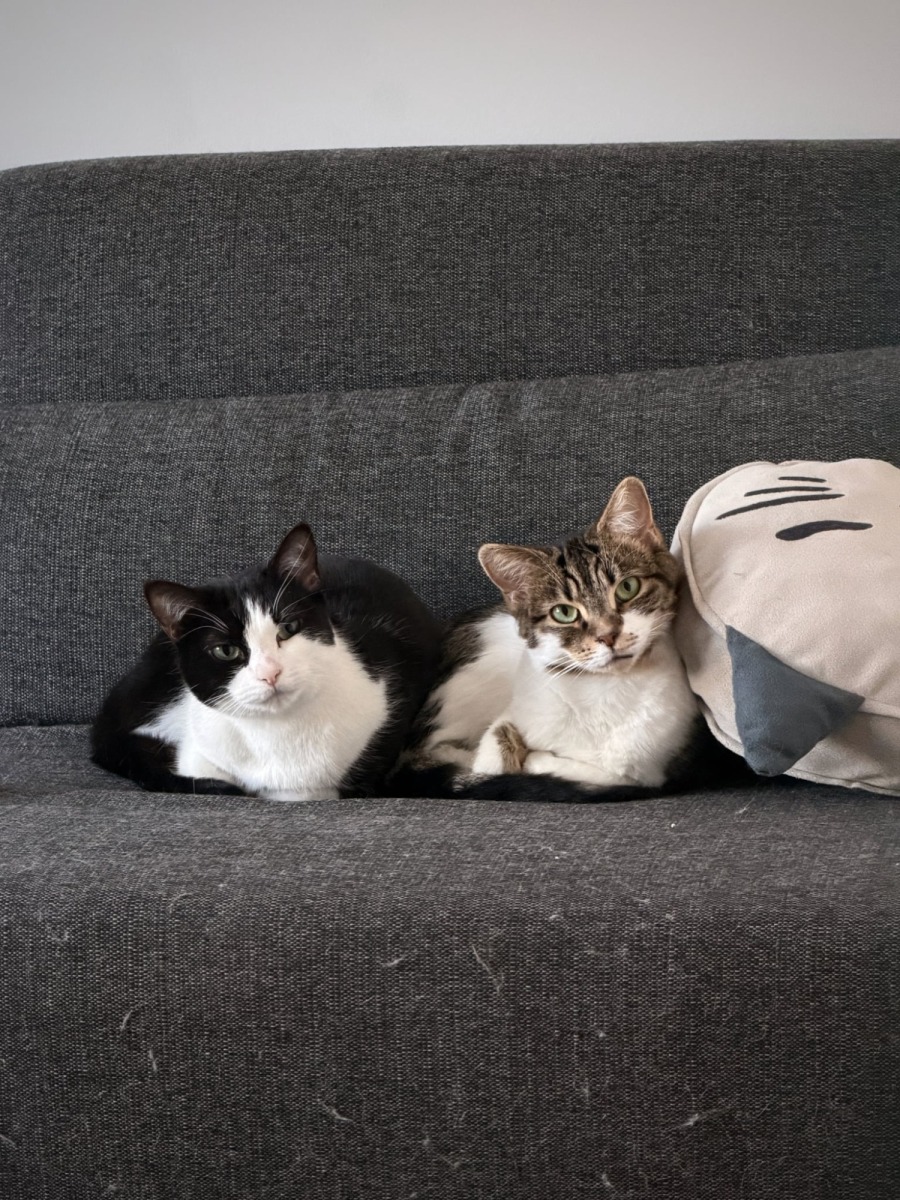 Two sweet little girls, born to be lap cats but cursed with social anxiety. They’re get along well with other cats but are still a bit unsure about people. They are both crazy about pats and treats and toys but they don’t show that side of their personalities to just anyone.