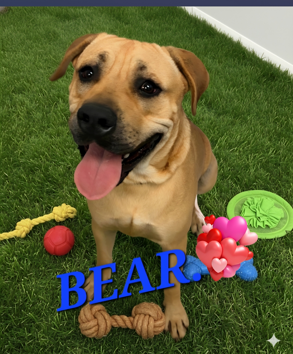 Meet Bear, a young, vibrant dog with a heart full of joy. Bear's personality is a delightful mix of sweetness, friendliness, and playful antics. He's incredibly smart and loyal, always eager to please those around him. Despite his need for some training, Bear's gentle and goofy nature makes every moment with him fun and rewarding. He's a strong boy who loves attention and thrives on affection. Adopting Bear means bringing home endless laughter, companionship, and unconditional love.