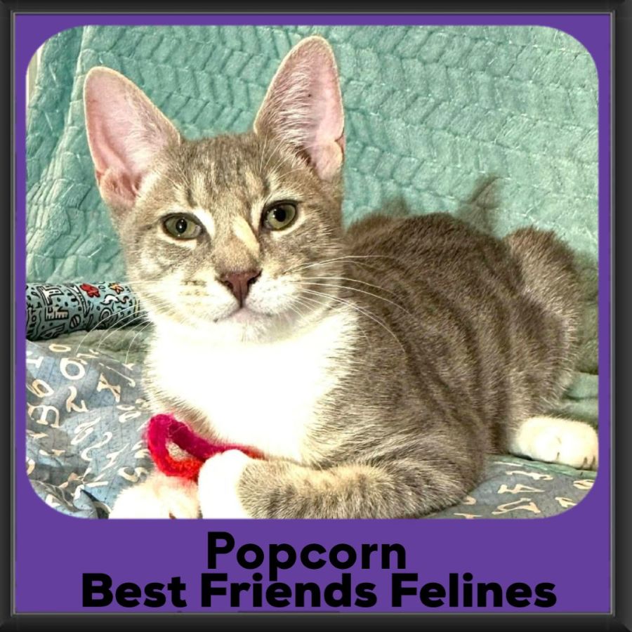 Popcorn is a rare blend of inquisitive energy and sweet devotion. She’s looking for a home where she can be your tiny best friend, your constant helper, and the soft little grey cloud you never knew you needed.