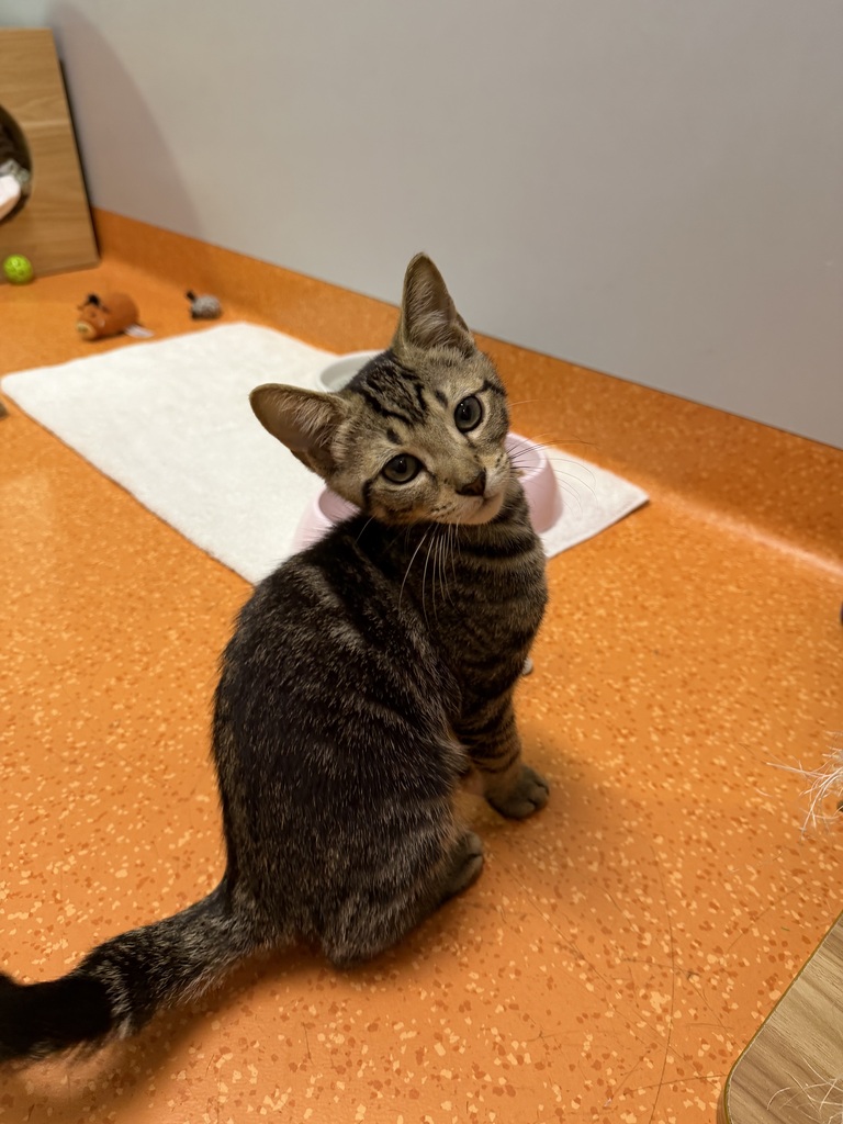 In new environments, Mercury prefers to observe from a safe, cozy spot before joining the action. With patience, soft voices, and a calm home, his curious personality begins to shine. Once he feels comfortable, Mercury enjoys gentle pets, warm naps in sunny windows, and quietly playing with toys.