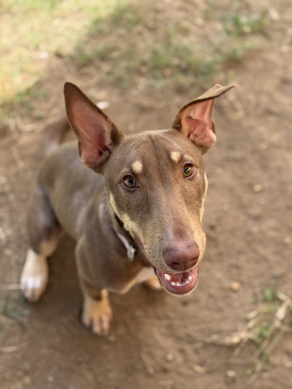 Because she can become very excited during play and greetings, a home with calmer children would suit her best (this may be flexible for the right family). All children must meet Clover prior to adoption.