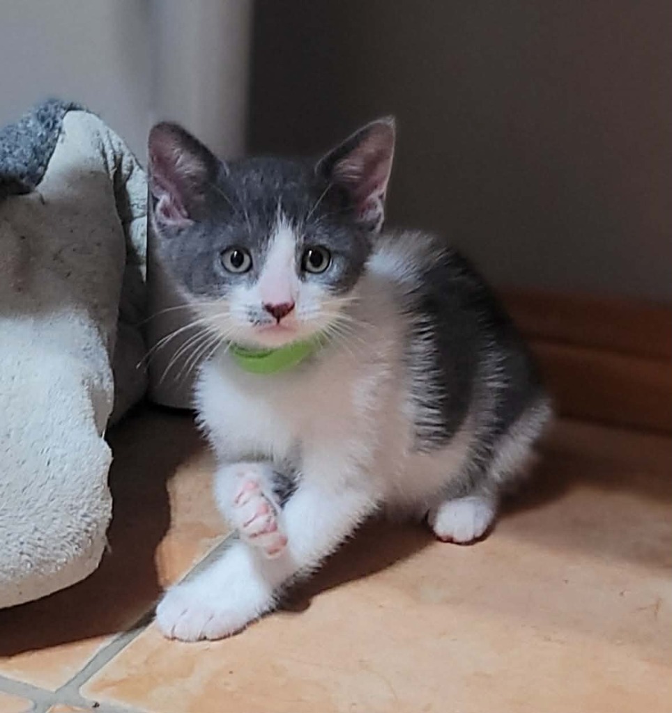 I came into care with my brothers and sisters, and I was fine with people being in the room, but not so keen on being touched. Now I'm first up onto my carer's lap when she comes in. I LOVE chicken and I'll tell my littermates they have to wait while I get lots. I chow down while purring and getting stroked. It's the life! Come meet me and take me home. I'll be desexed and have my second vaccination when I'm old enough.-