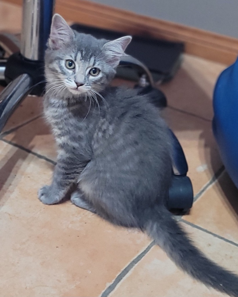 I came into care with my brothers and sisters, and I was fine with people being in the room, but not so keen on being touched. I was the most timid of my littermates, hiding when they came out. Now I love pats! I have soft, glorious fur and will have at least a medium length coat when I'm grown. Come meet me and take me home. I'll be desexed and have my second vaccination when I'm old enough.-