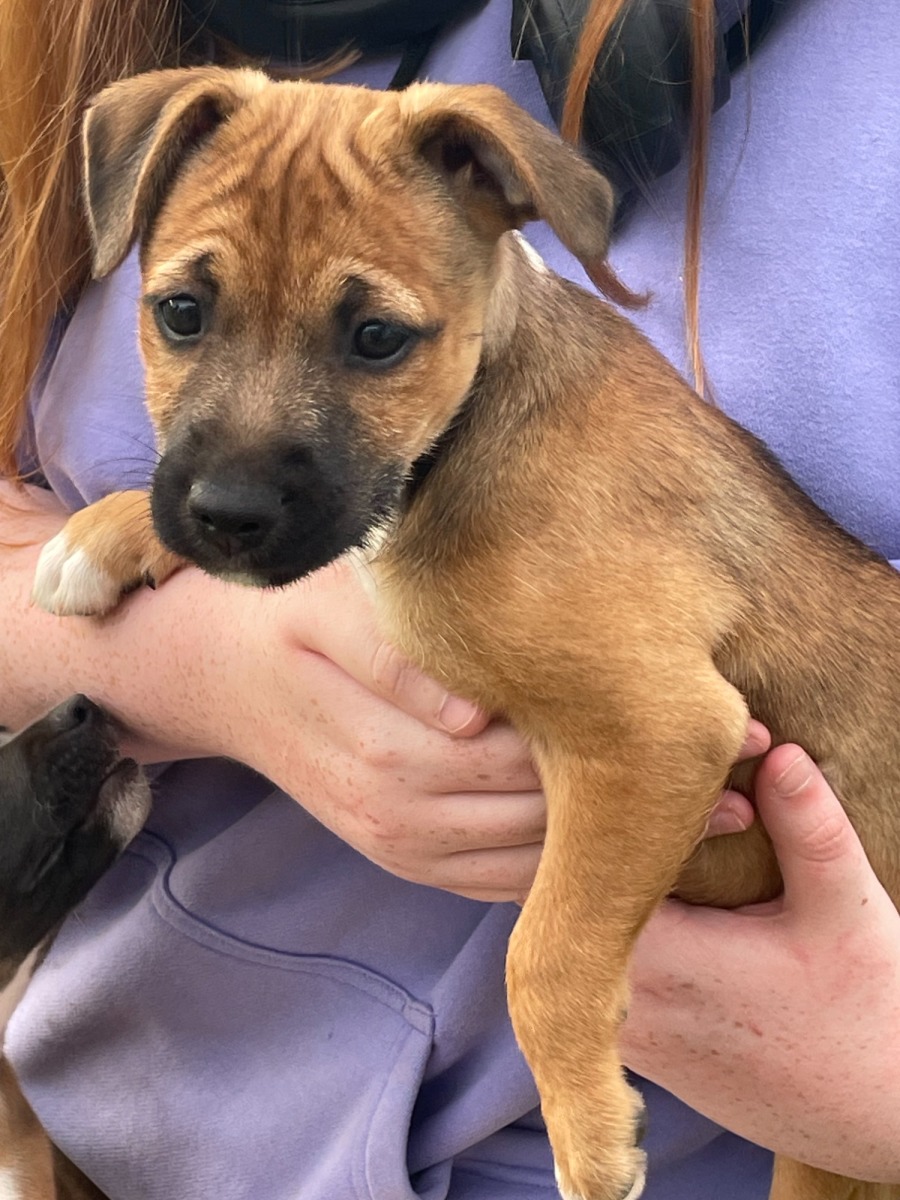 Izzy is an English Staffordshire Terrier (Mum) x Wire Haired Jack Russell Terrier (Dad). We have met both parents and they are both very calm, relaxed and friendly.