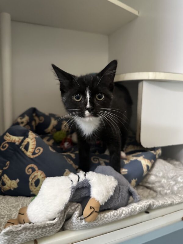 Jolene is a sweet black-and-white kitten with a gentle nature and a heart full of affection. She loves being around people and will happily curl up beside you for a cuddle after a little playtime. With her soft coat, bright eyes, and calm, friendly personality, Jolene quickly wins over everyone she meets.