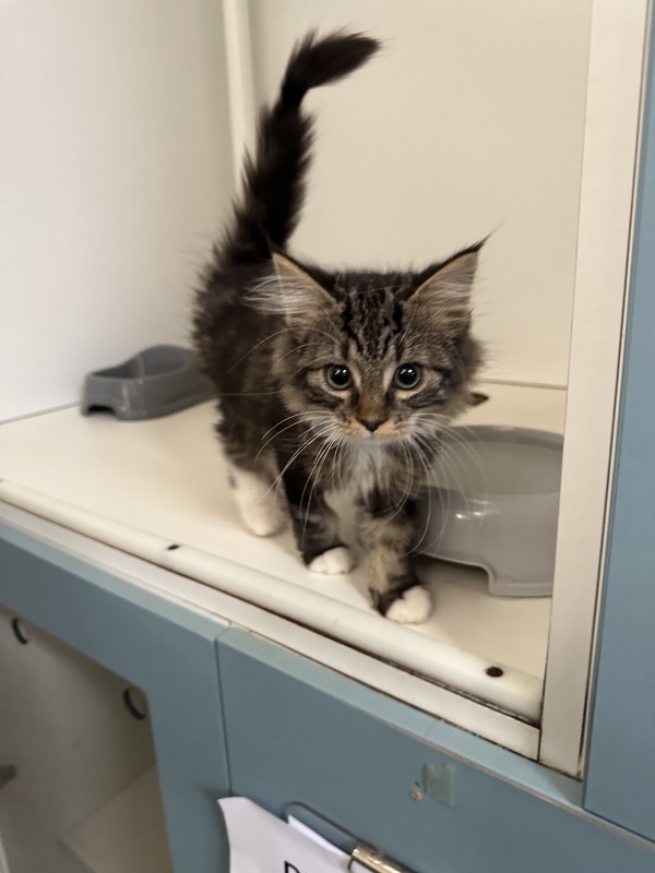 Scout is a sweet and affectionate kitten who loves being around people. She has a gentle, loving nature and happily seeks out attention, often curling up nearby or following her humans from room to room. Scout is also quite chirpy, she’ll softly “talk” to you throughout the day, especially when she’s excited or greeting you.