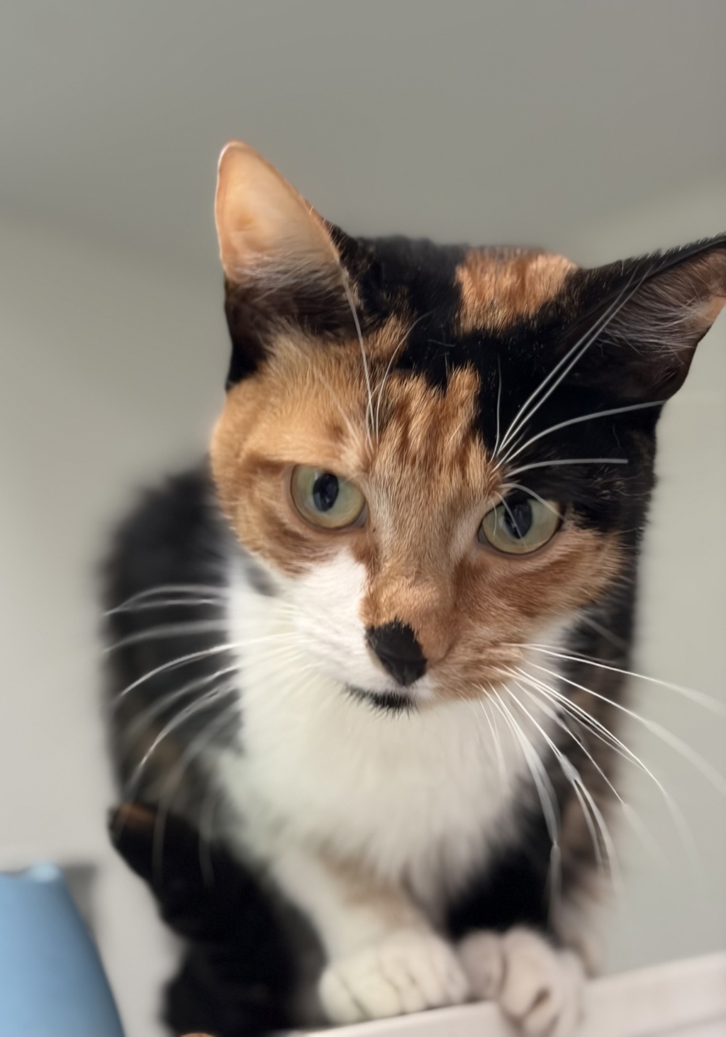 Minty is a beautiful 1½-year-old calico girl with a gentle heart and a quiet nature. Though she may be a little shy when meeting new people, once she feels safe her sweet personality really shines through. Minty loves the company of other cats and would do especially well in a home with a friendly feline companion. She enjoys calm spaces where she can relax, observe, and slowly build trust with her humans. With a little patience and kindness, Minty blossoms into a loving and loyal companion. Her soft purrs and gentle presence make her a truly special girl. If you're looking for a sweet, sensitive cat to share your home with, Minty could be the perfect match.