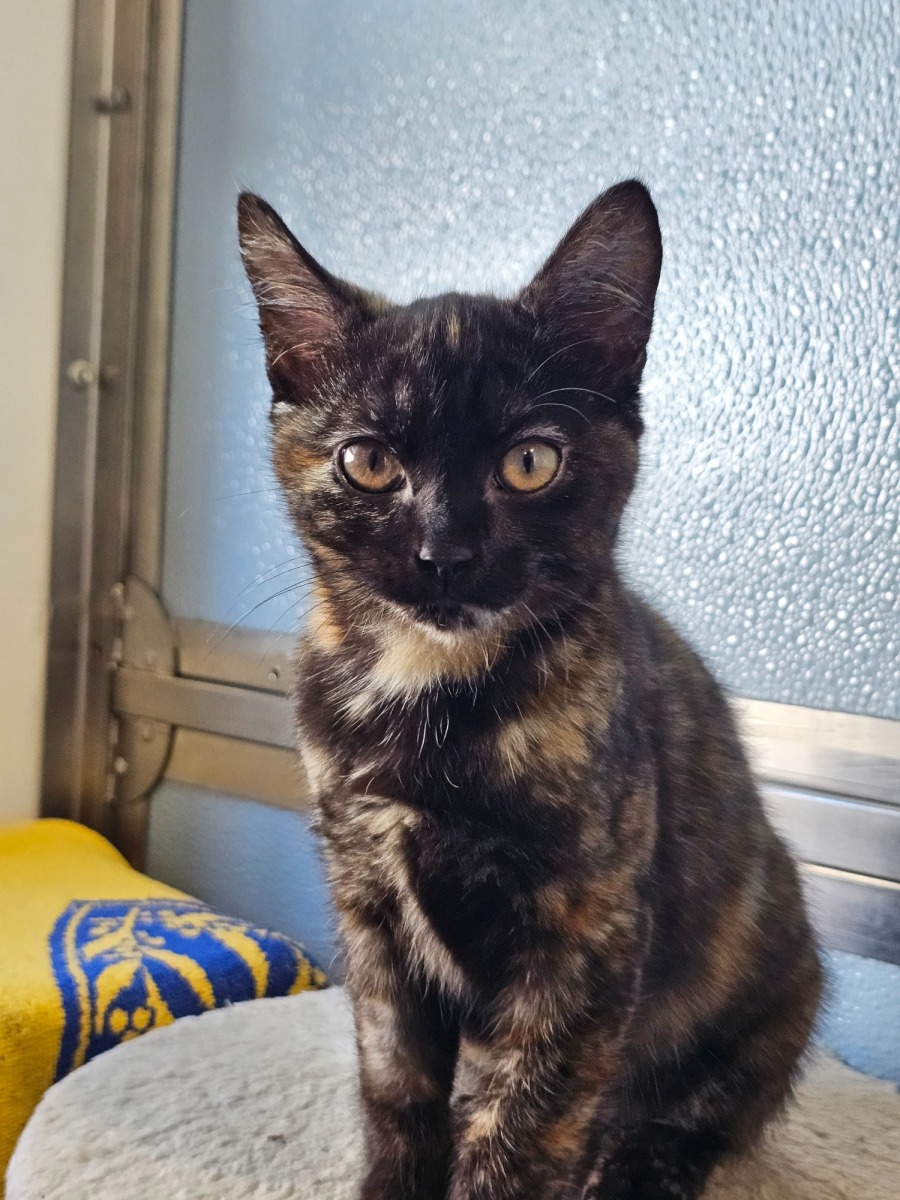 Hi! I'm Freya, a playful and curious kitten who loves exploring every nook and cranny of my shelter home. When I'm not on an adventure, I'm all about cuddles and purrs. I adore playing with toys and making new friends. If you're looking for a sweet companion to bring joy and laughter into your life, I'm the perfect match! Let's make wonderful memories together. Why not come meet me and let the fun begin?