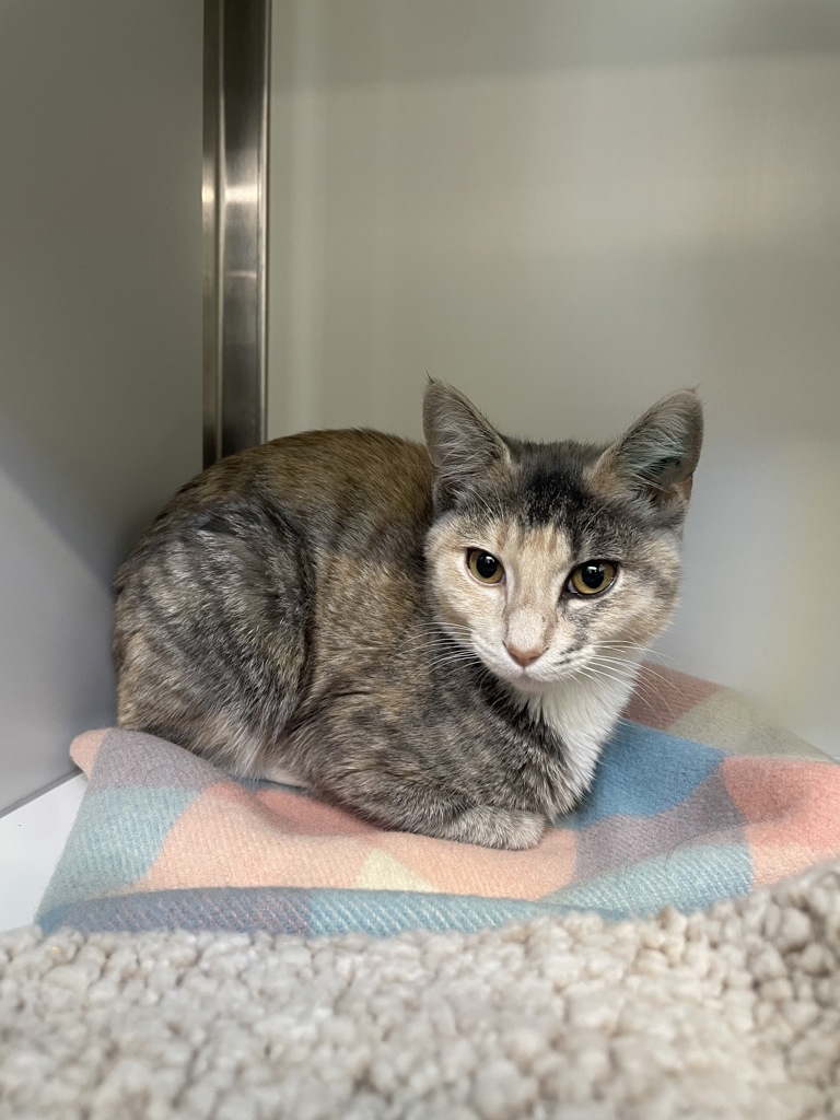 Kivi will do best in an adult or older teen home who have experience with timid cats and building their confidence in the home. Kivi isn't a huge fan of treats but giving her lots of comfy hiding spots will help build her trust in you!