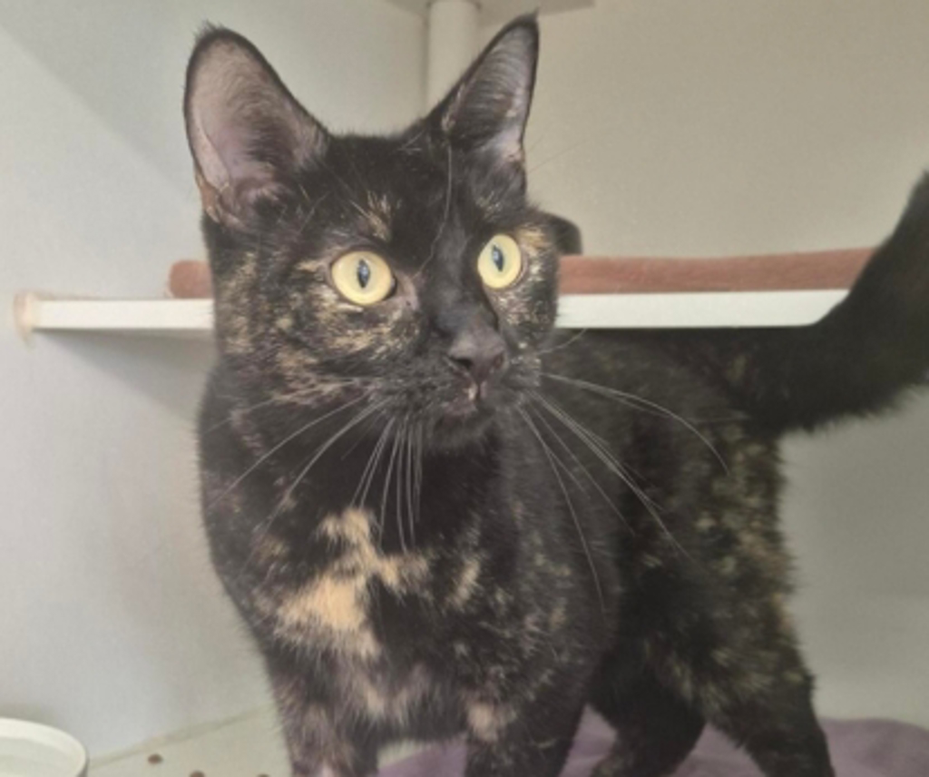 Onyx is a beautiful female tortoiseshell cat with a gentle soul and a quietly curious nature. With her unique patchwork coat of deep blacks, warm oranges, and soft browns, she's as striking as the gemstone she's named after.