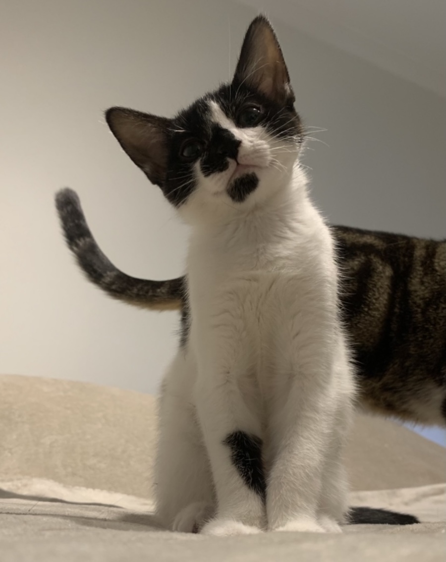 Don’t let her petite frame fool you—Precious is a little powerhouse with a personality that fills the whole room! This sweet black-and-white girl is the smallest of her litter, but she certainly knows how to make her presence known.