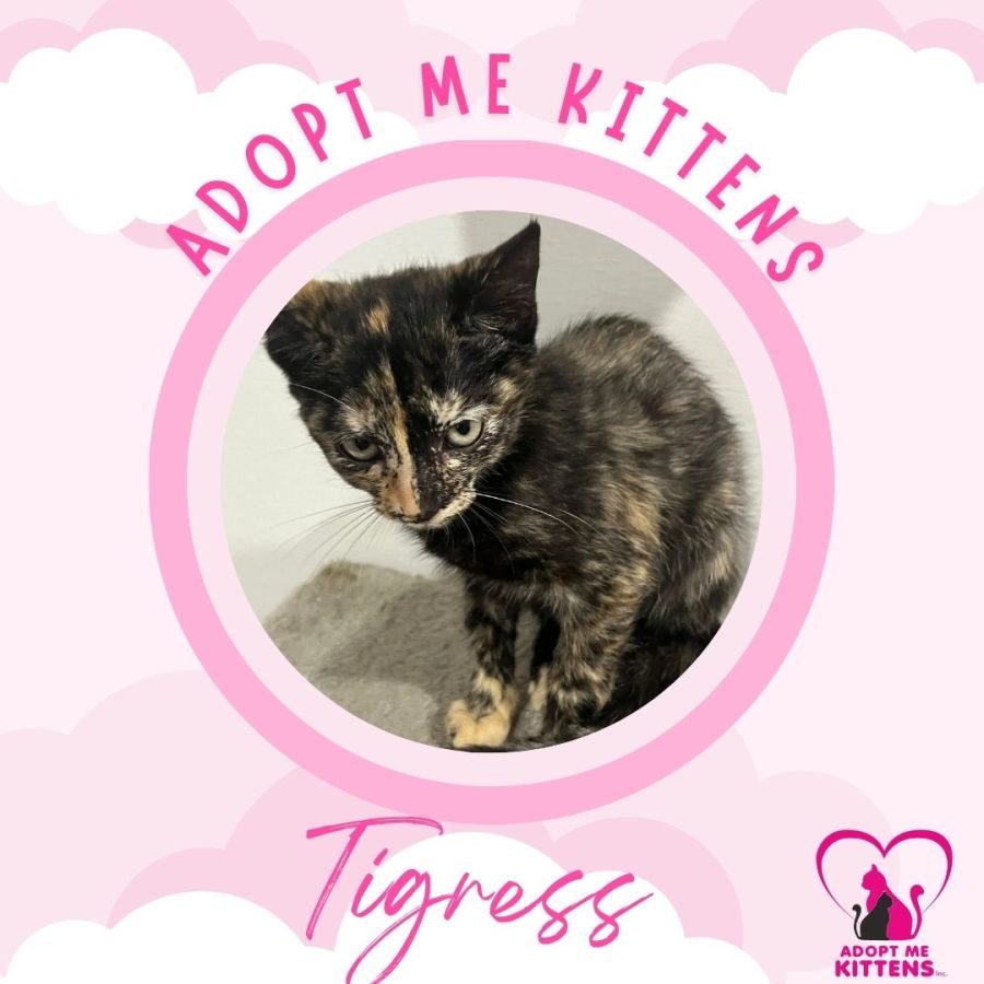 Tiggress is a very timid kitten, she need a new owner that is patient and kind that will have time to cuddle her throughout the day.