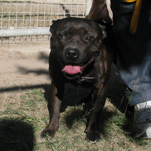 A good looking, slightly built dark brindle girl. She loves people. (how do you take a photo of a staffy without its tongue out???) because we are close to the nsw/qld border our animals can go to either state. We do not transport animals interstate. This dog is in the tweed pound. The pound is open 7 days a week, 10am-4pm nsw time. Some pound dogs are not yet desexed but must be desexed before they leave the pound – this may mean 2 trips – one to buy and one to collect the dog