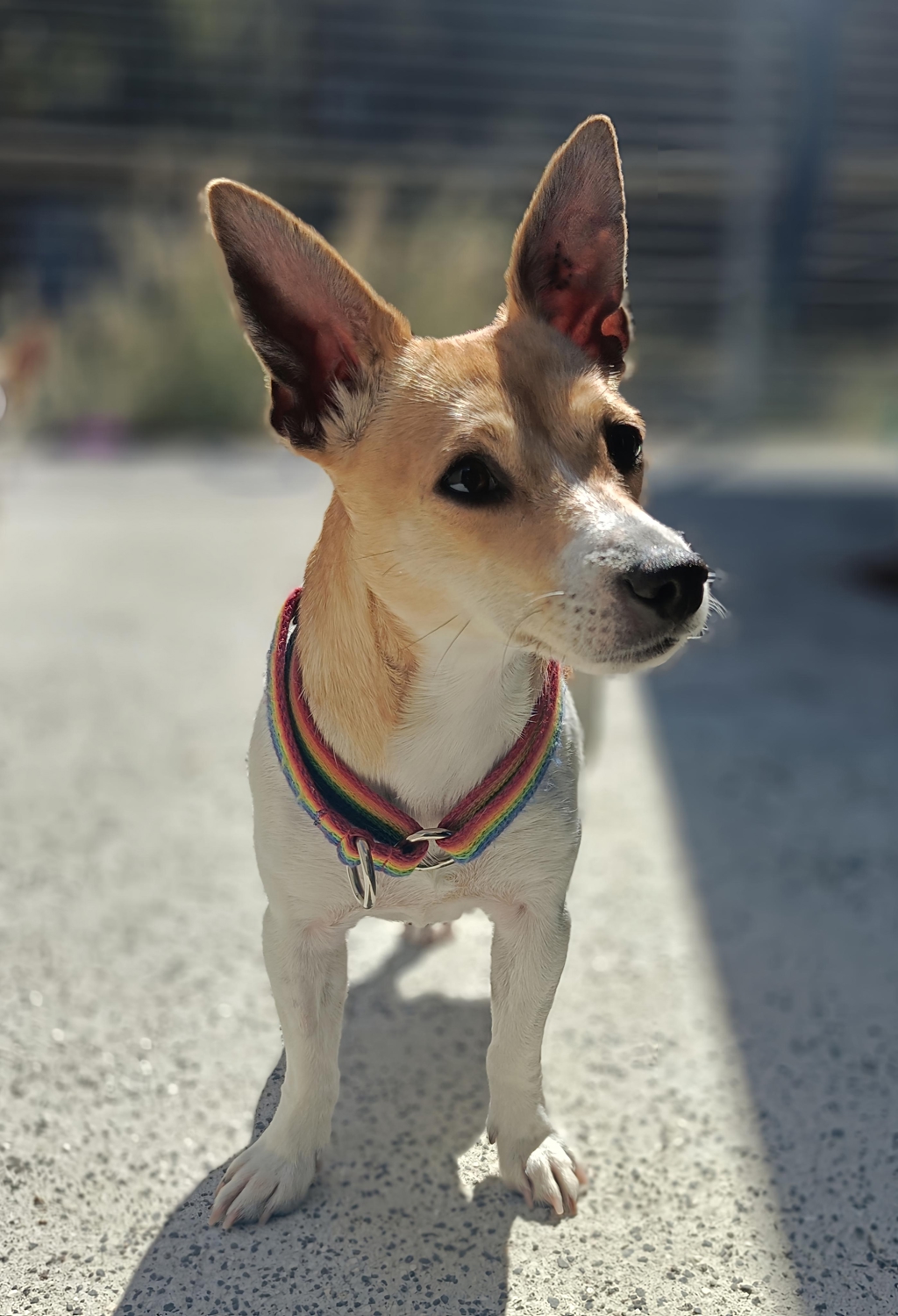 Daphne is a lovely young Jack Russell cross Chihuahua with a sweet nature and a curious little personality. She has lived with many other dogs and is comfortable around canine companions, but much of her life so far has been fairly sheltered. Because of this, the big outside world can feel a little overwhelming at times, and she may be unsure in new places or situations.