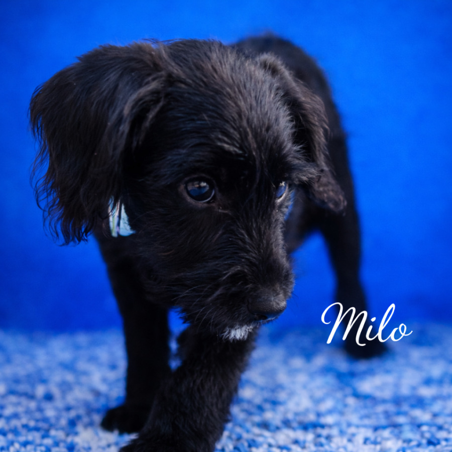 Sweet little Milo is a 10 week old Longhaired Pointer mix who has found himself in Wally’s Doggie Rescue care along with his litter mates.