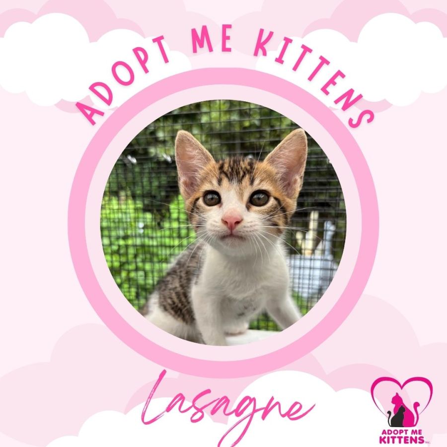 Lasagna has it all, she’s incredibly cute, affectionate and resilient. Lasagna needs to be adopted to an inside home where she will not be outside unsupervised at any time.