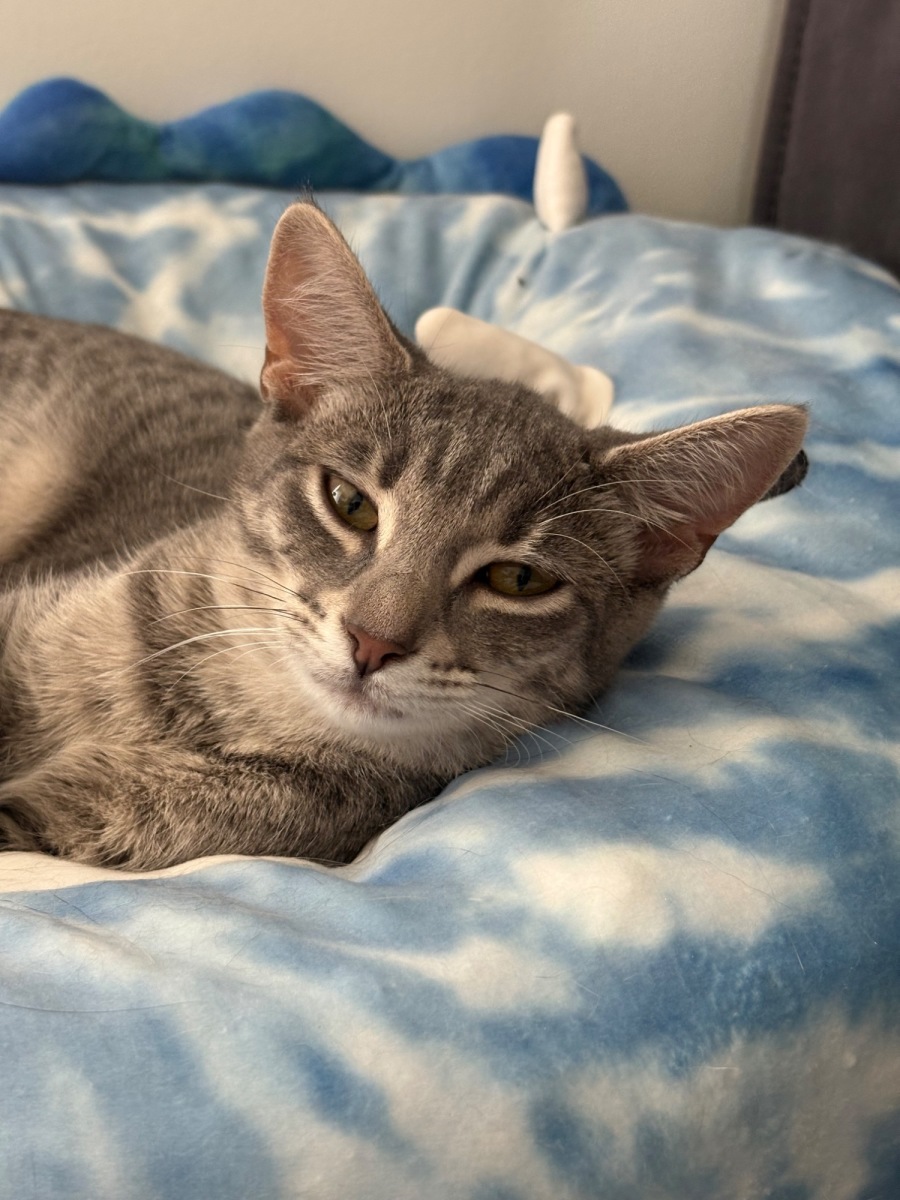 She is often playing with her sisters (available: Constantine and Zatanna) and is often playing with them or the other foster cats. She makes friends with new cats very quickly.
