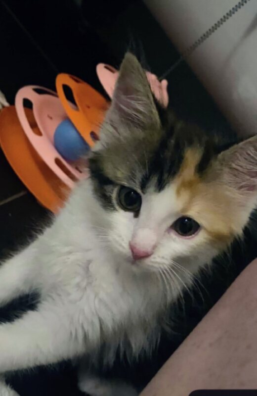 She’s a confident kitten who enjoys exploring her surroundings and playing, but she also loves the company of other cats and would thrive in a home with a feline friend. Whether it’s chasing toys, cuddling up for a nap, or following you around for a conversation, she brings fun and warmth wherever she goes.