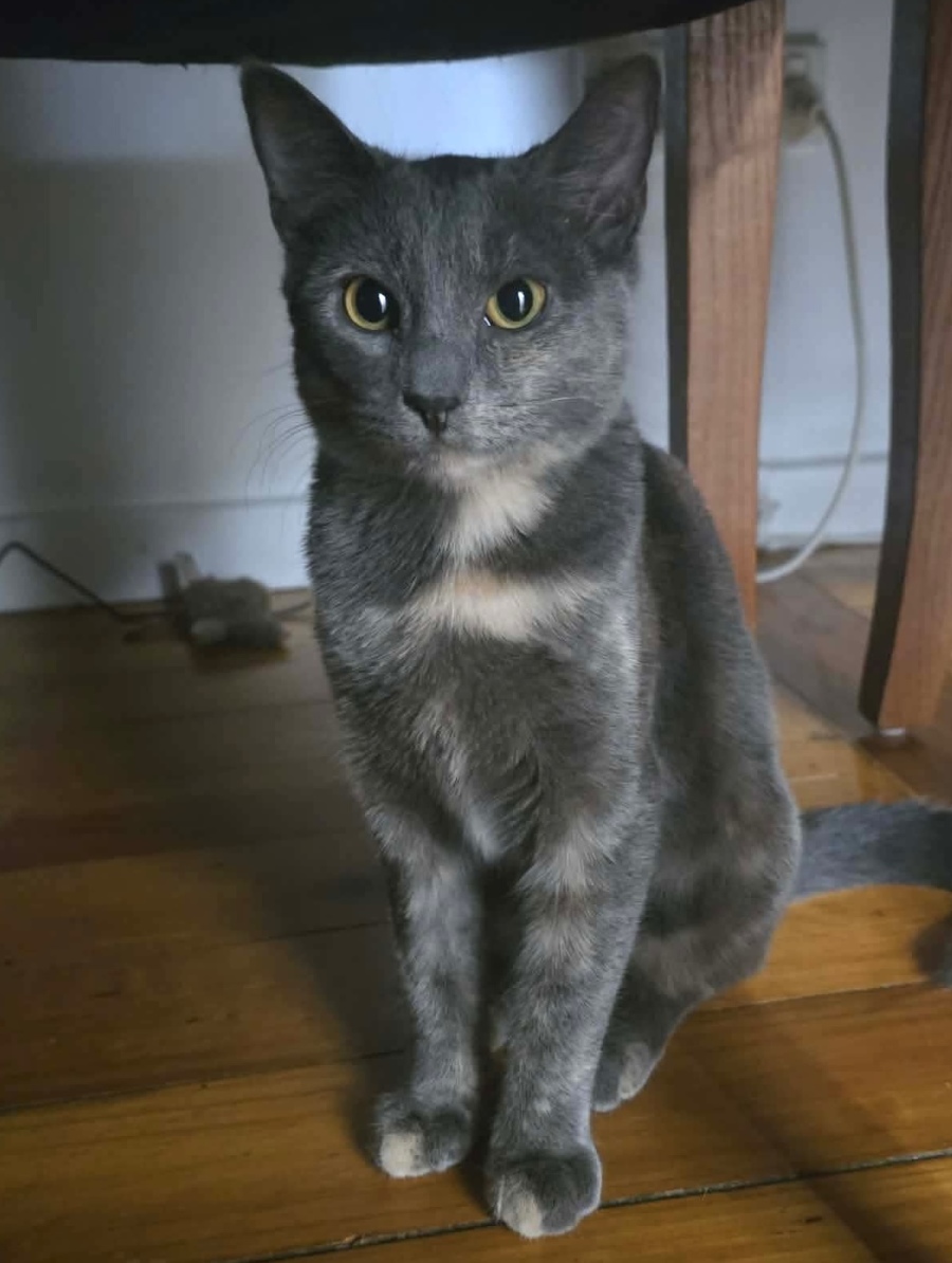 Rocket is a sweet grey tortie girl with a gentle, sensitive nature. At around 5 months old, she has come a long way since being rescued from a colony and is slowly learning that indoor life can be safe and full of love.