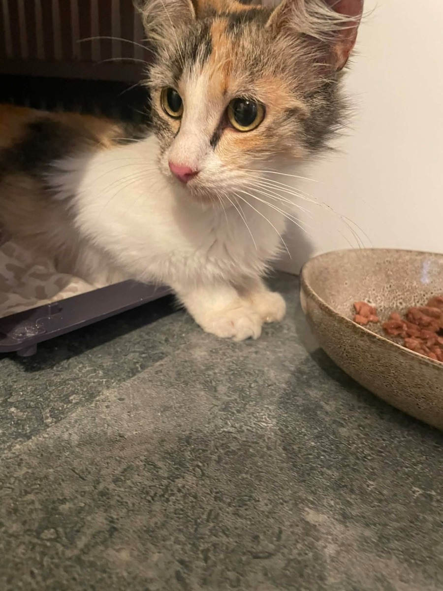 • Look: A stunning Calico coat (and she’s finally getting her healthy glow back!).