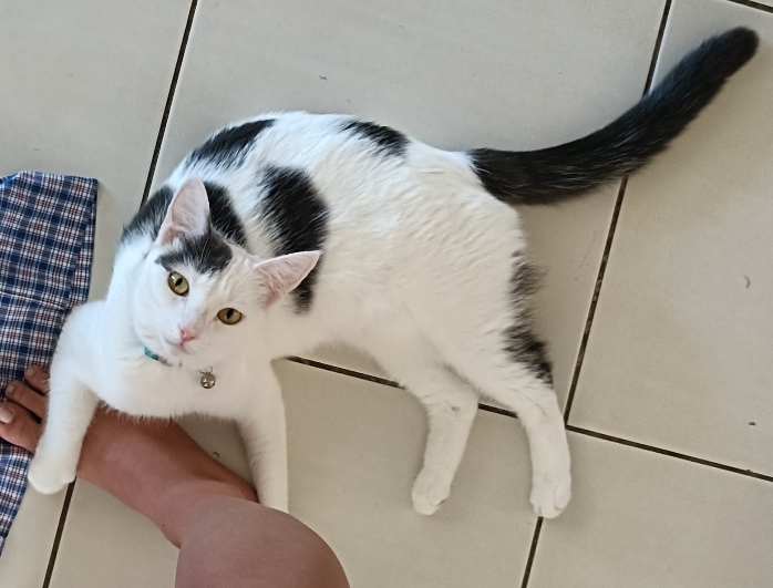 With familiar people, Pepper is warm and expressive. She will find you in the home, softly meow and approach for connection — often rubbing against your legs or flopping onto the floor for her favourite neck and back scratches.