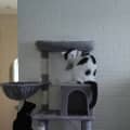 She has previously lived comfortably alongside dogs and may suit a home with a respectful canine companion, particularly where she has access to elevated spaces.