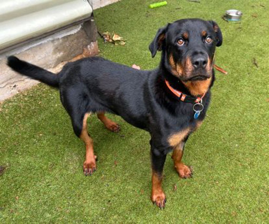Meet Dovima: a beautiful 3-year-old black Rottweiler with a gentle heart and a quiet, thoughtful nature. While she might not be the type to rush up and greet you right away, give her a little time and patience and you'll discover just how sweet and loving she really is. Dovima is the kind of dog who forms meaningful bonds with her people, and once you've earned her trust, you'll have a loyal companion by your side.