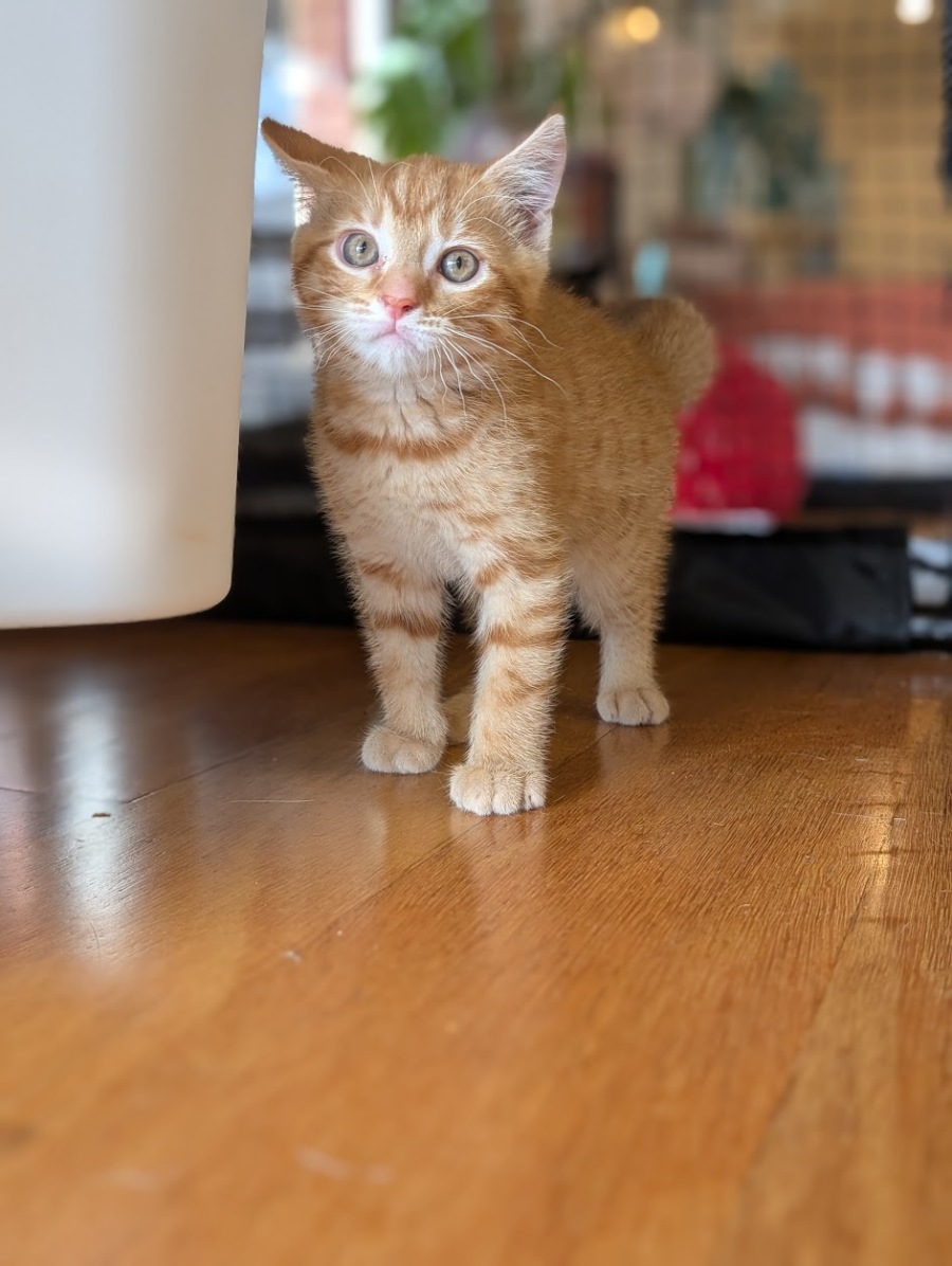 Fred is an adorable ginger kitten with a gentle and sweet nature. As the only kitten in his litter, he has grown up very close to his mum, Charlie, and is still learning about the world at his own pace.