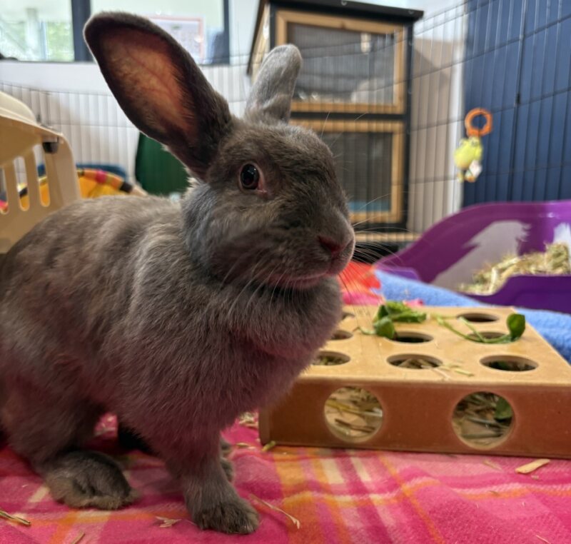 Brynn is a gentle, curious grey bunny with a soft coat and an even softer heart. She has a natural sense of wonder about the world—whether it’s investigating a new corner of the room, sniffing out a hidden treat, or quietly observing everything around him with his bright, thoughtful eyes.