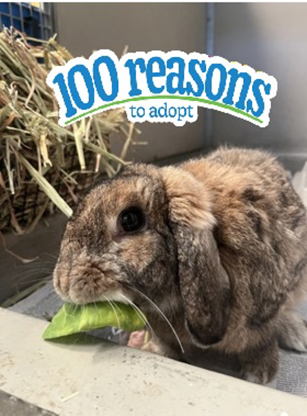 His diet should consist of unlimited hay, fresh leafy greens, and high-quality rabbit pellets, with fresh water always available. Regular check-ups with an experienced rabbit-savvy veterinarian are important to maintain his health as a senior. Sherlock prefers gentle handling and would do best in a home with older children or adults who understand how to interact with rabbits calmly and respectfully.