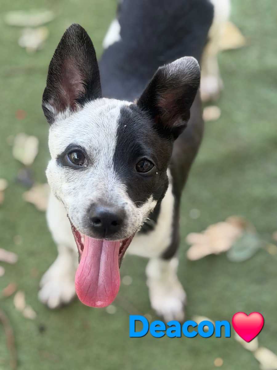 Hi there! My name is Deacon, and I’m am told I am a gorgeous cattle terrier mix pup who is just beginning my big adventure i life. My foster family says I’m full of personality, enthusiasm, and the kind of spirit that’s ready to take on the world one wag at a time.