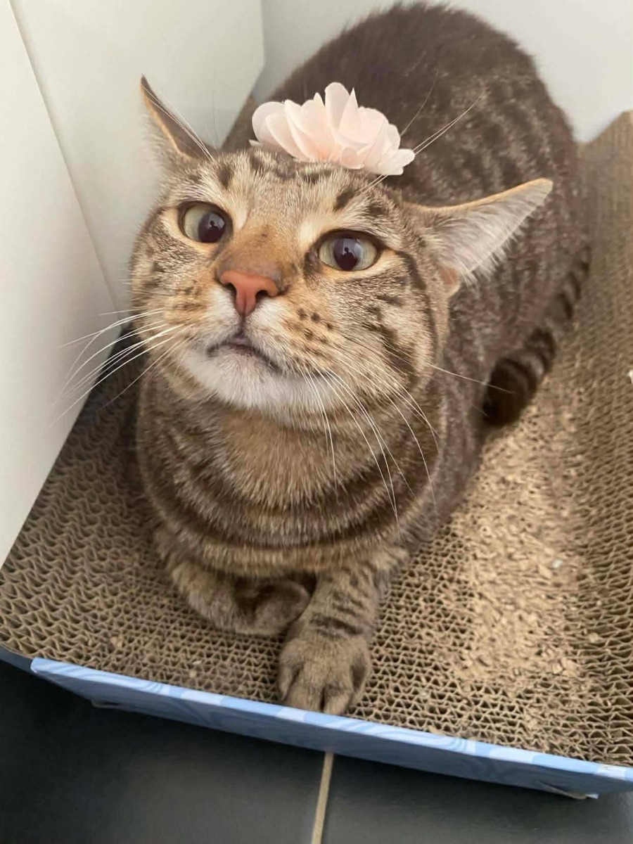 Tilly is sweet and gentle. She has this unusual habit of trying to squish into odd spaces. She’s a cuddly cat once she gets to know you. Fine around other cats after the usual slow introduction phase. Seeks a quiet household. Prefer indoor only.