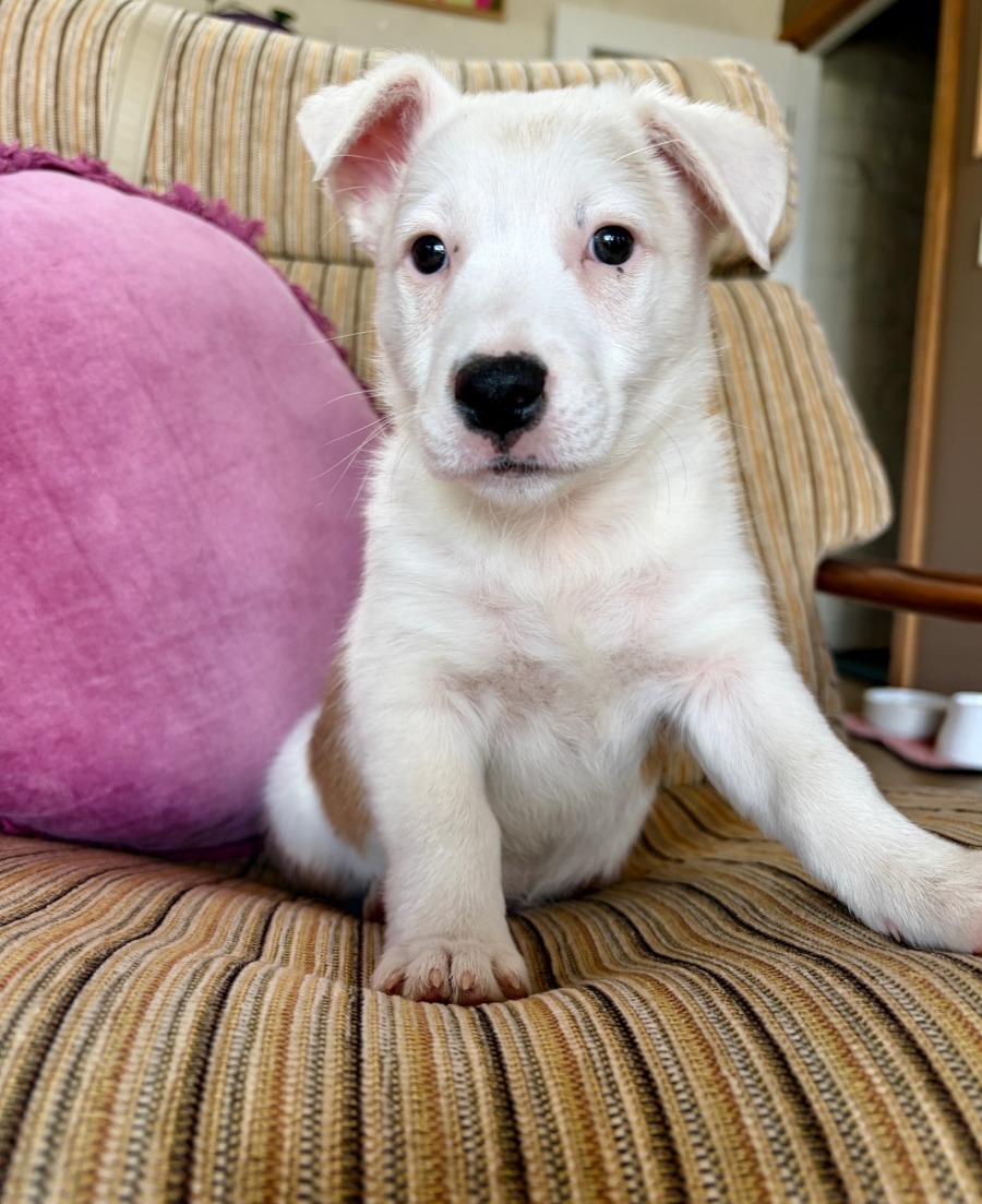 Ripper Razmatazz has got pot loads of cuddly flair. The ultimate smooch pot, when he’s not hooning about with his littermates, he loves to curl up in your neck for snugs. This little dude will actively sploot out for belly rubs and is the most affectionate baby dog.