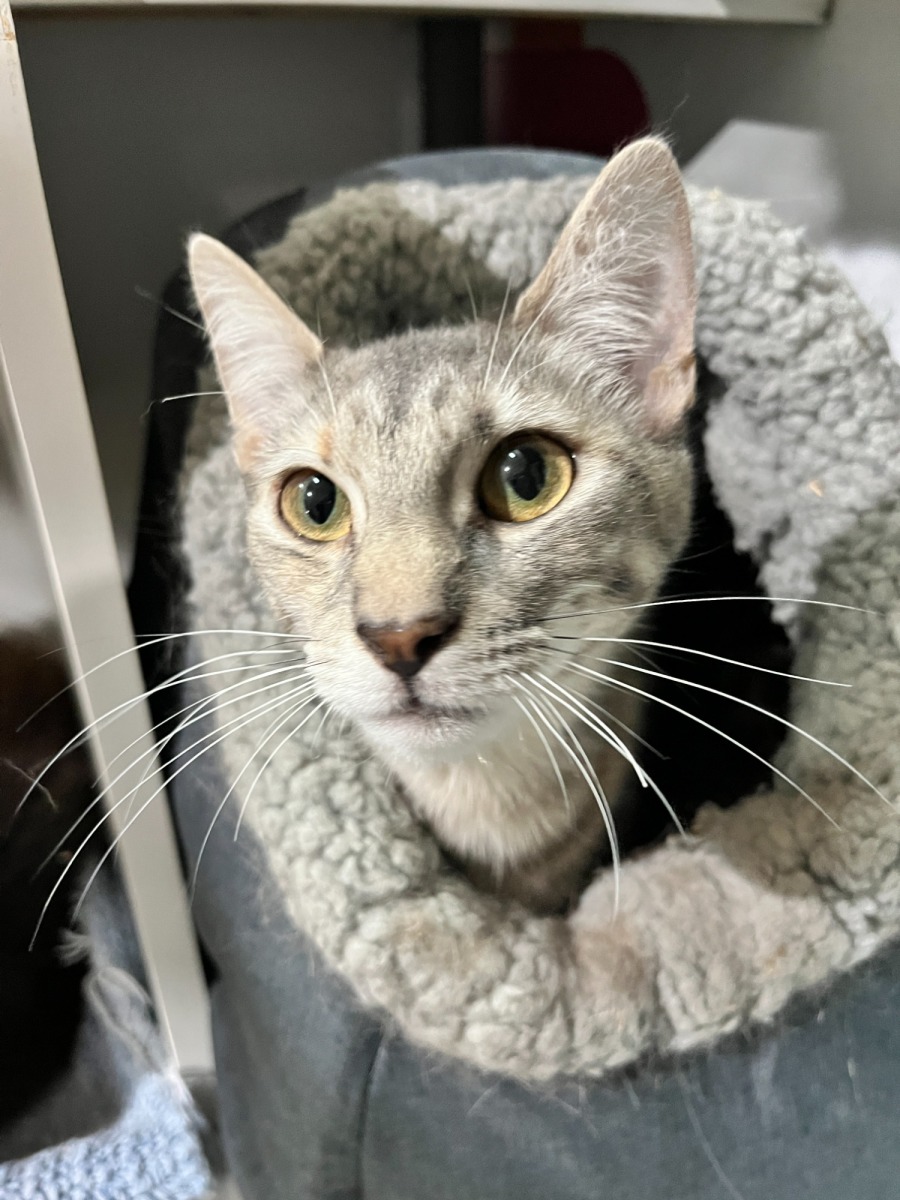 Scarlett isn't fussy when it comes to sharing her space with other cats, and her curiosity keeps her entertained as she explores her surroundings. She loves nothing more than curling up in her cozy bed, snuggling in with contentment, and "making biscuits" as she kneads her comfy spot.