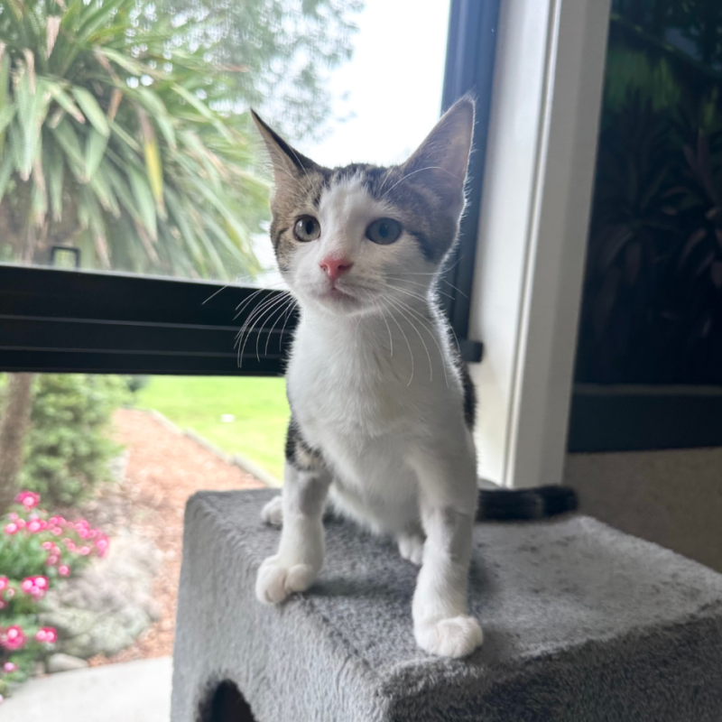 He’s curious and playful, always up for an adventure, but his gentle and loving nature really shines through in quiet moments. Stevie is the kind of kitten who will greet you like you’ve been gone for years, even if it’s only been five minutes. He’s social, friendly, and ready to fill a home with love.