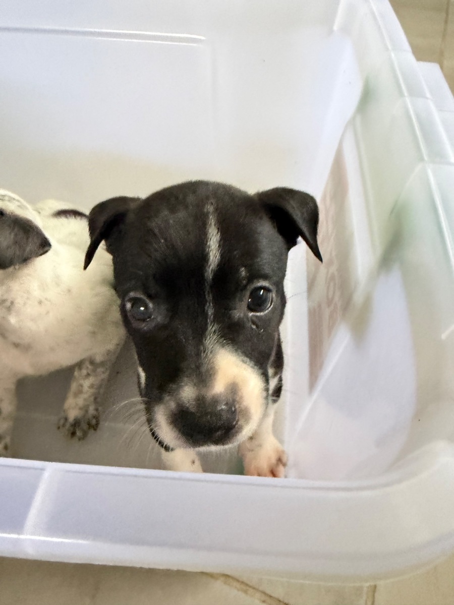 Introducing Boba, a delightful male puppy brimming with potential and looking for a home or loving foster care. Turning eight weeks on March 24, 2026, this little guy is the adorable offspring of a Bull Terrier cross Staffy. While his dad remains a mystery, we suspect he may have Bull Arab in his lineage, giving Boba a unique mix of traits. With his distinctive dark brown and white coat, Boba is already showing signs of his future handsome self.