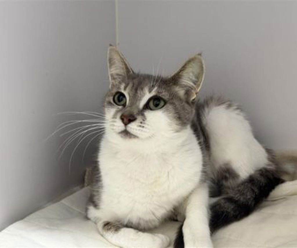 Chloe is a lovely girl with a gentle heart and a very special talent-she absolutely adores other cats! Since arriving at the shelter as a stray, she's found comfort in the company of her feline roommate and has become completely obsessed, often choosing cuddles and companionship over anything else.