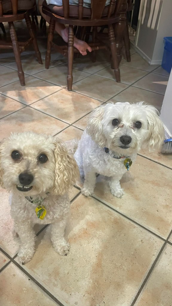 At night Astro and Pluto sleep in the laundry at their current foster home. They can be left outside during the day if needed but much prefer to be inside with their humans. They are house trained, however if you are going to be out during the day they will need access to an appropriate toileting area.
