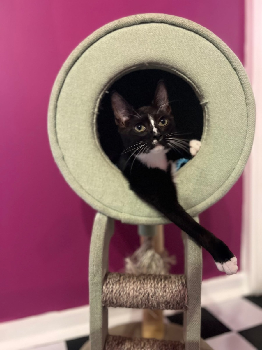 Sunny is a happy go lucky kitten, full of loves and purrs and likes to take his time when meeting new animal friends. He is friendly to them quickly but does prefer the sit back and watch first method.