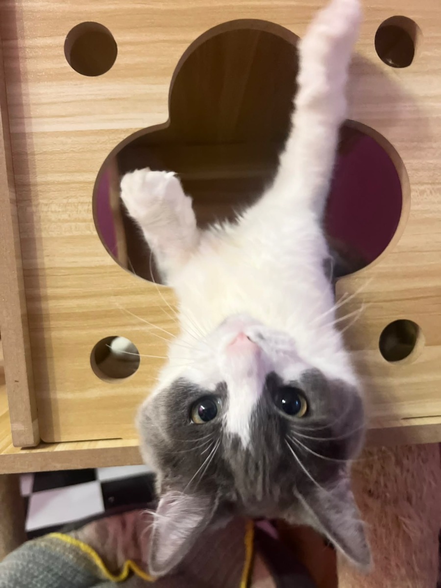 Monti is a very happy loving young girl. She can take a minute to make new kitty friends however she does get there pretty quickly. We feel she could go into a multiple cat home as long as they aren’t too bossy. She is an ex colony kitty so she likes to know her surroundings are safe.