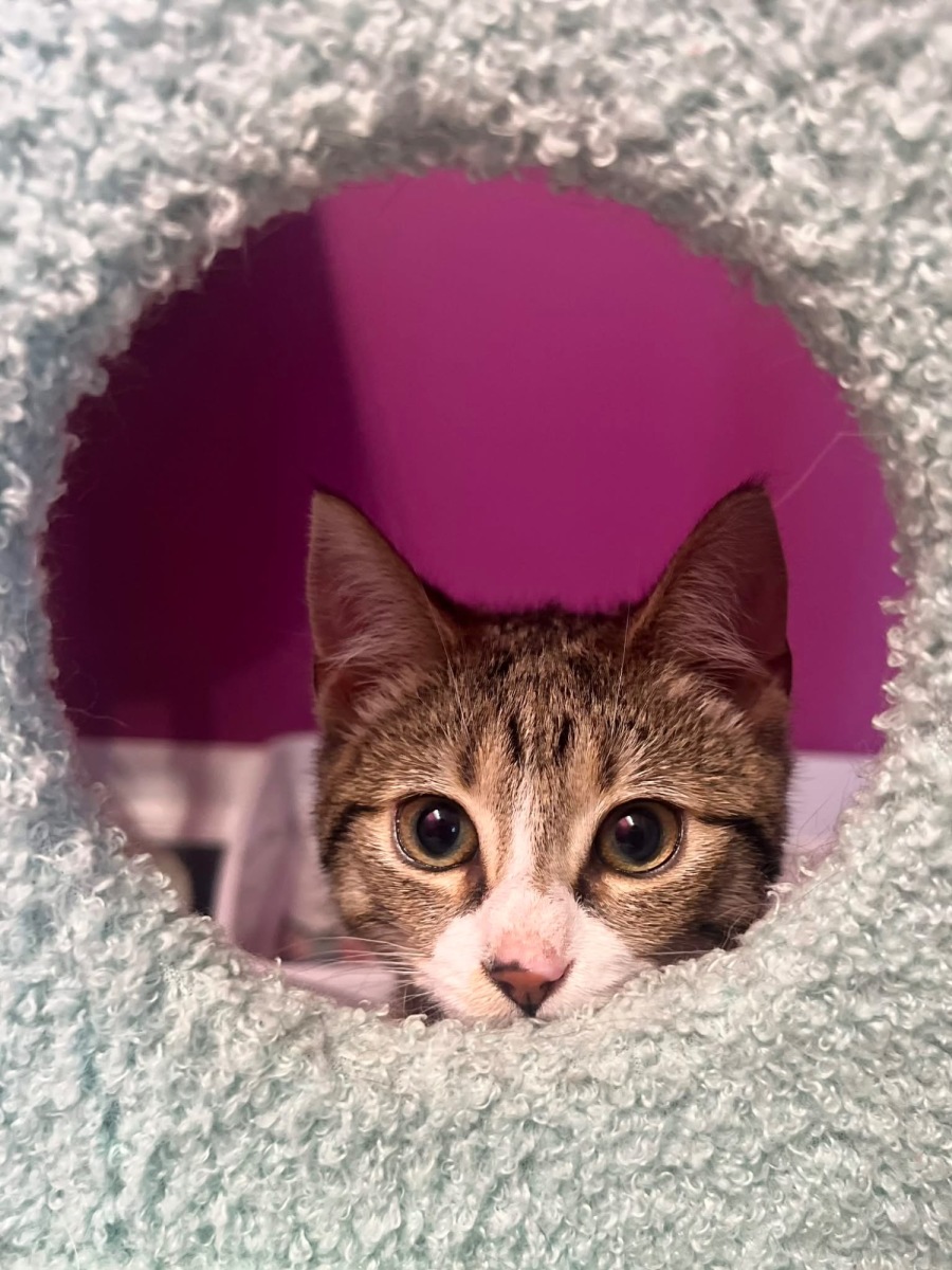 Buster is a former colony cat who has truly embraced the good life. Now full of love, he adores attention, enjoys being pampered, and has a playful, affectionate nature that makes him a joy to be around.