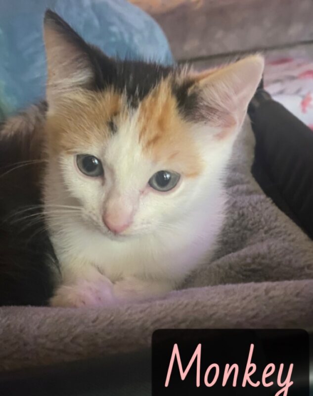 Meet Monkey, a cheeky little 3-month-old kitten with a playful spirit and a heart full of love. True to her name, Monkey is always curious about the world around her and loves to explore, play, and climb before settling down for some gentle cuddles.