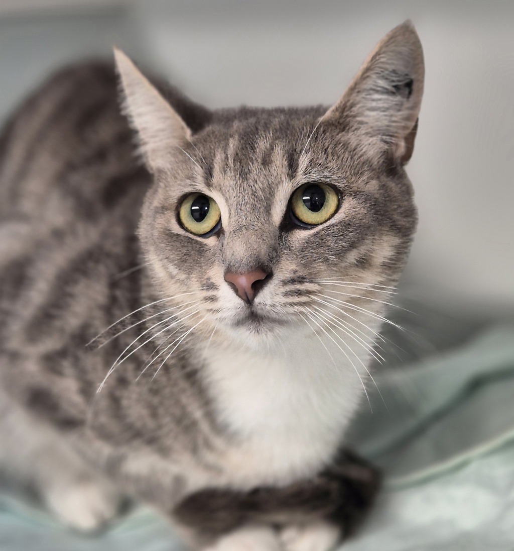Fleur, the mum, has clearly had to look after herself and protect her baby, and that instinct is still strong. She enjoys affection and will lean into cuddles, but can sometimes feel conflicted and may let you know when she needs space. With patience and understanding, she's learning she doesn't have to be on guard anymore.