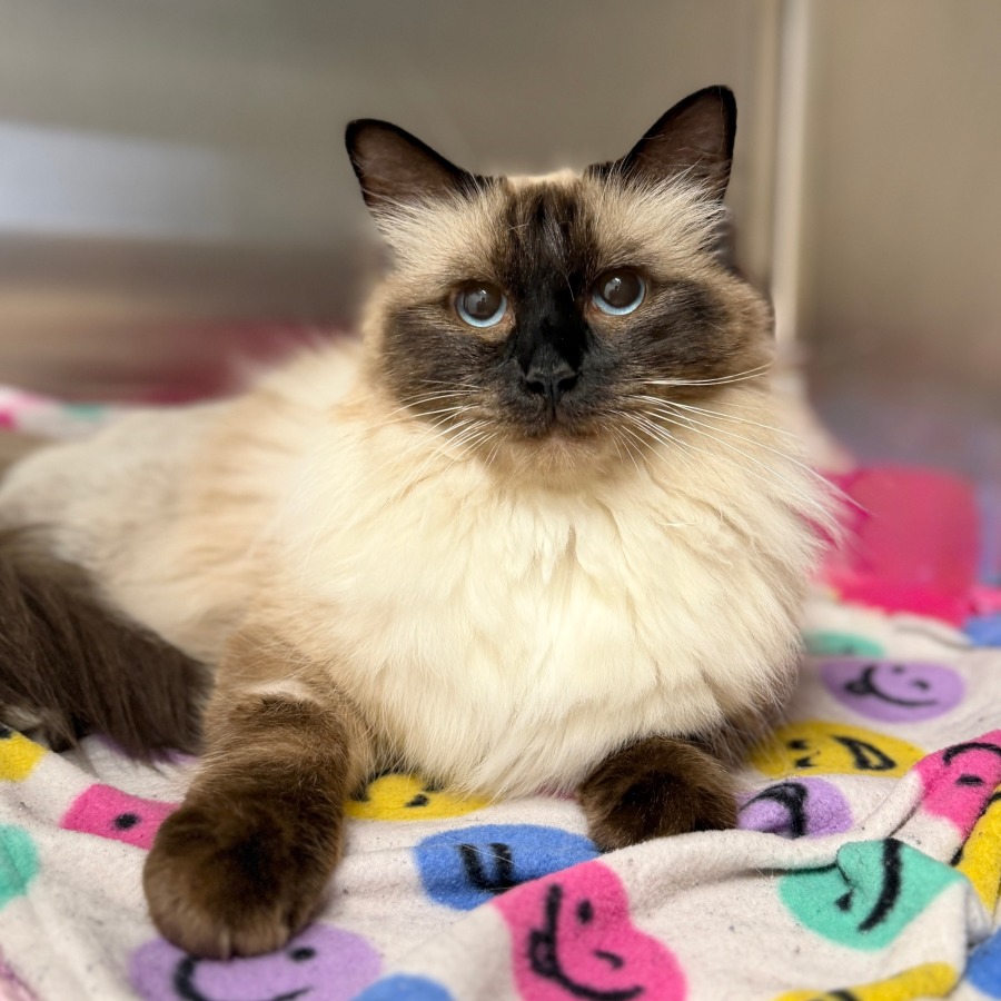 Lou is a handsome Ragdoll with a big personality and a playful streak to match. He’s looking for a home that understands his energetic nature and can give him the space—and the right kind of play—to thrive.