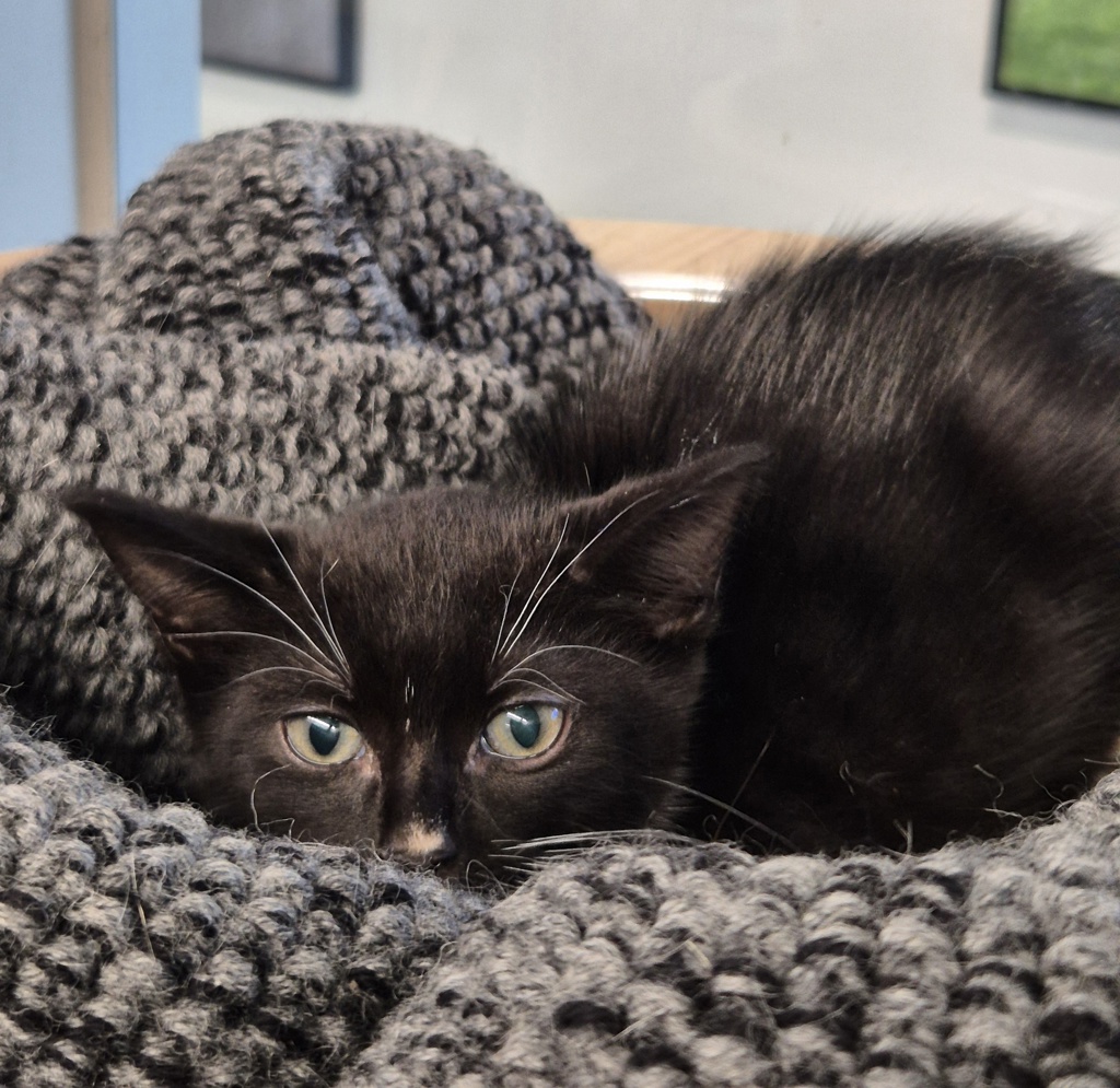 Some of us are adventurous and mischievous, while others are more laid-back and love cuddles. A few of us may be a little shy at first, but we all love toys and are ready to find our families. Since we're still young, our personalities are developing, and we'll thrive in a stable home. Please be patient with us as we adjust to our new environment. A safe room to get used to new sounds and smells would help, along with a scratching post, a comfy bed, soft toys, and rolling, bell toys (our favorites)!