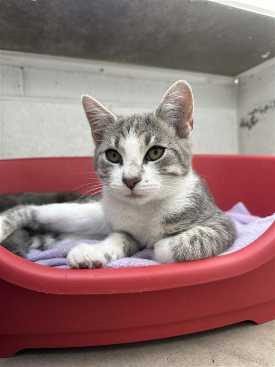 This cute little kitten is sure to melt your heart with charming antics and gentle purrs. Whether it's playing with a rolling ball or gently batting at a feathery toy, time spent with Flip is bound to be filled with joy and laughter. As this little kitten learns about the world, they'll also be discovering the comfort and happiness that come with being part of a loving family.