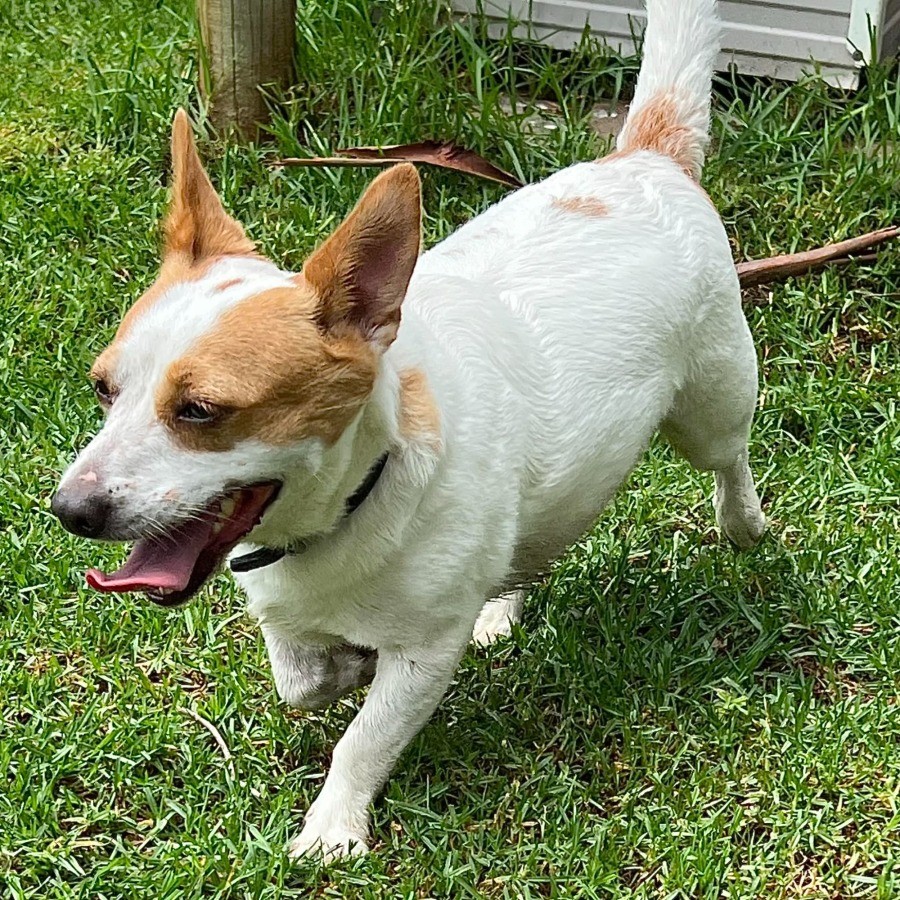 Zora is happy to meet everyone and is a typical young JR. She is not suitable with other dogs and cats but has lived indoors and travels well in the car.