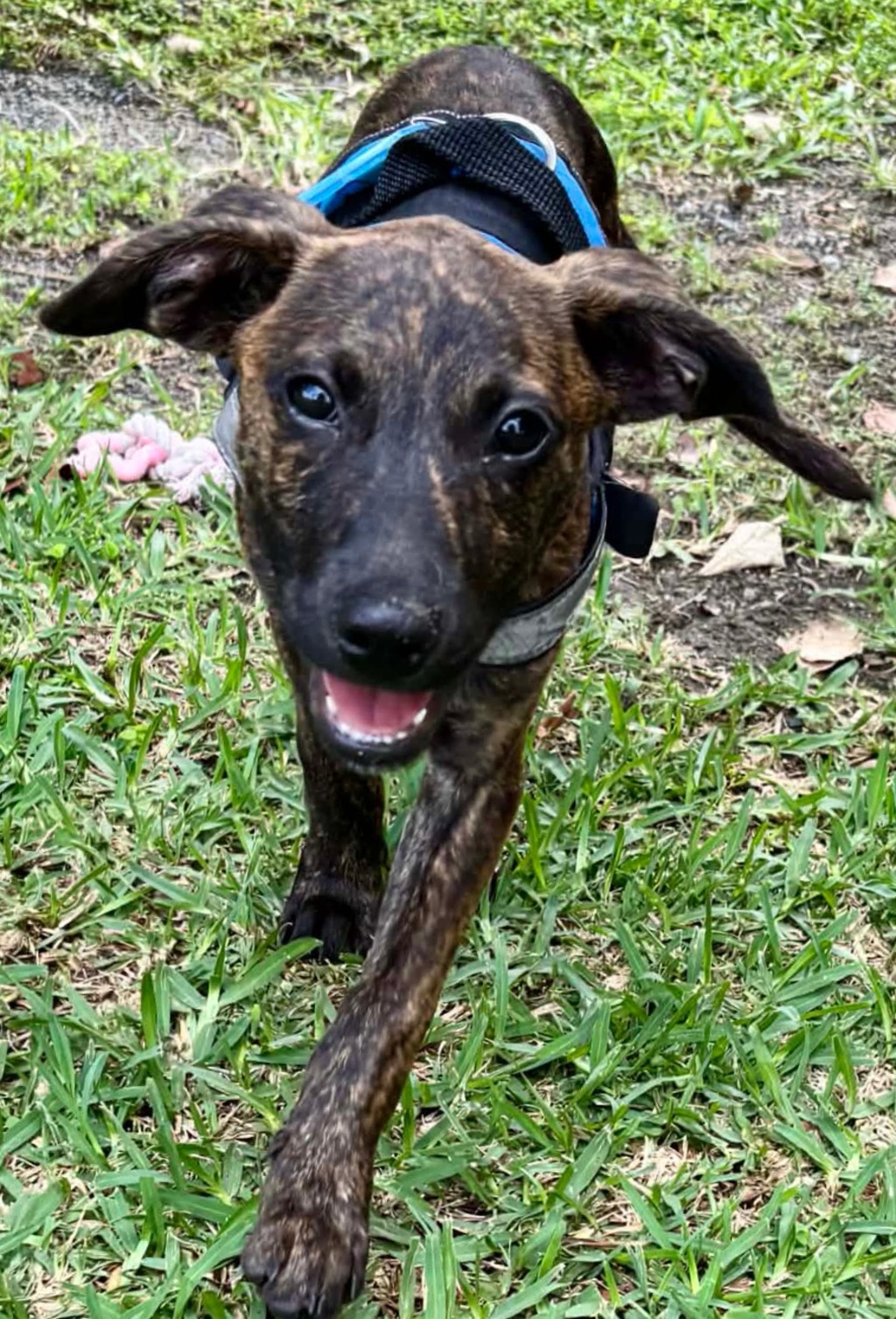 He's also discovering a love for fetch, and once he warms up, his playful side shines through.