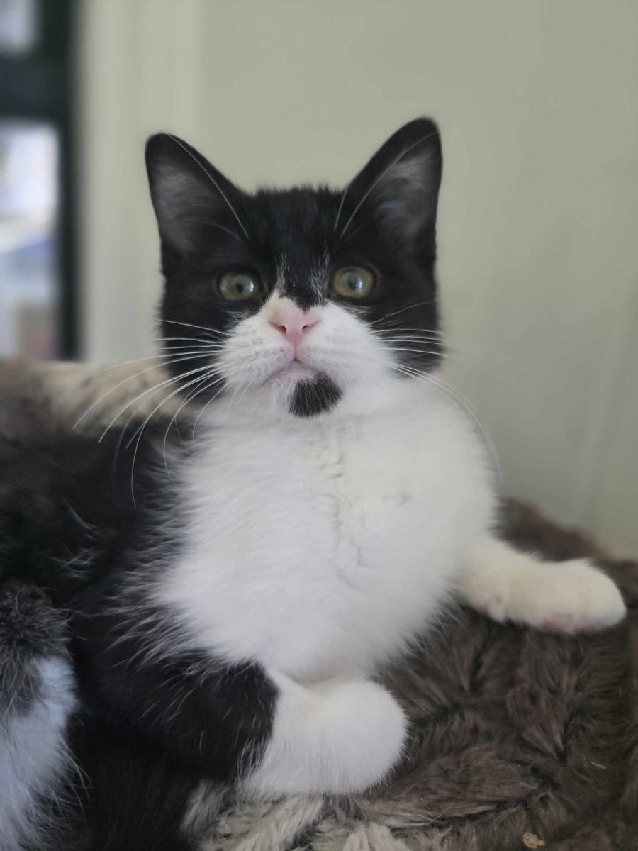 Meet Graci, a beautiful black and white Domestic Medium Hair (DMH) girl who simply loves to be loved. With her soft coat and gentle presence, she’s a sweet and affectionate companion who thrives on attention and being close to her people. Graci enjoys pats, cuddles, and those quiet moments where she can just soak up all the love you have to give.