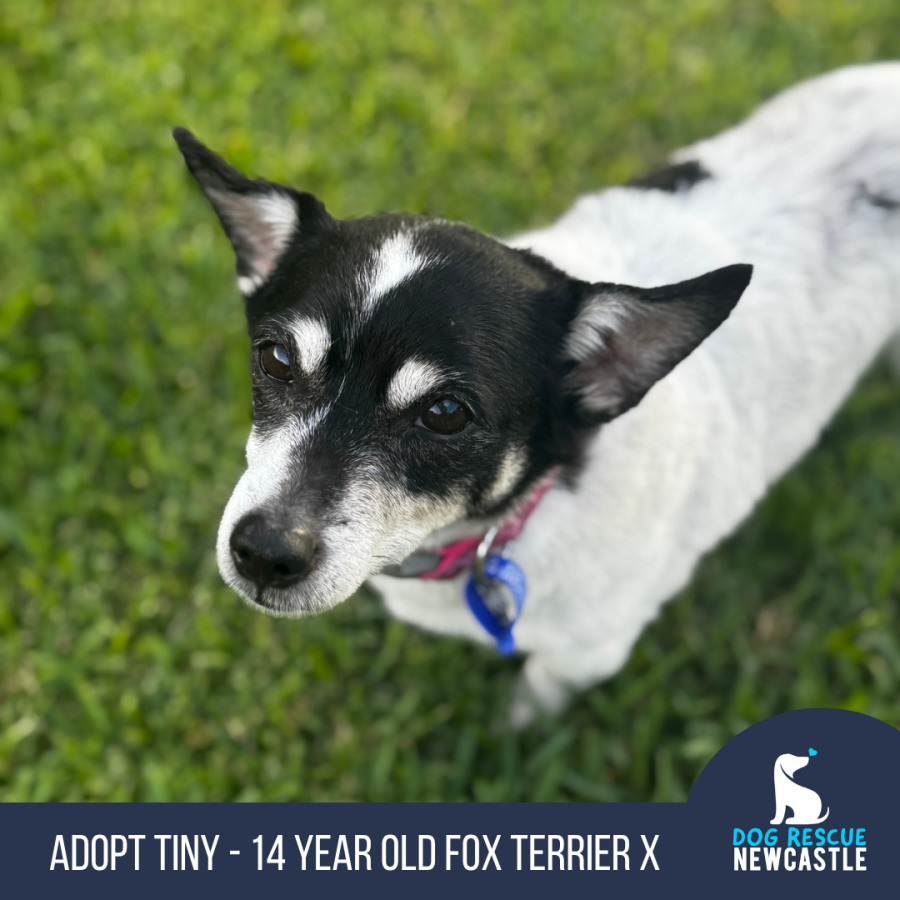 Tiny is an approximately 14yo Fox Terrier X. Weighing in at around 7kg, she’s tiny in size but with a big heart full of love to share with her new family. Tiny’s spirit is curious, playful and affectionate, and she’s happiest when she is close to you, snuggling up on the couch for a nap.